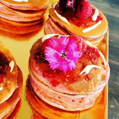 pancakes fourrés a la creme de mascarpone aromatisé a la fleur d'oranger , parfait pour se rafraichir lors d'un brunch de lendemain de mariage